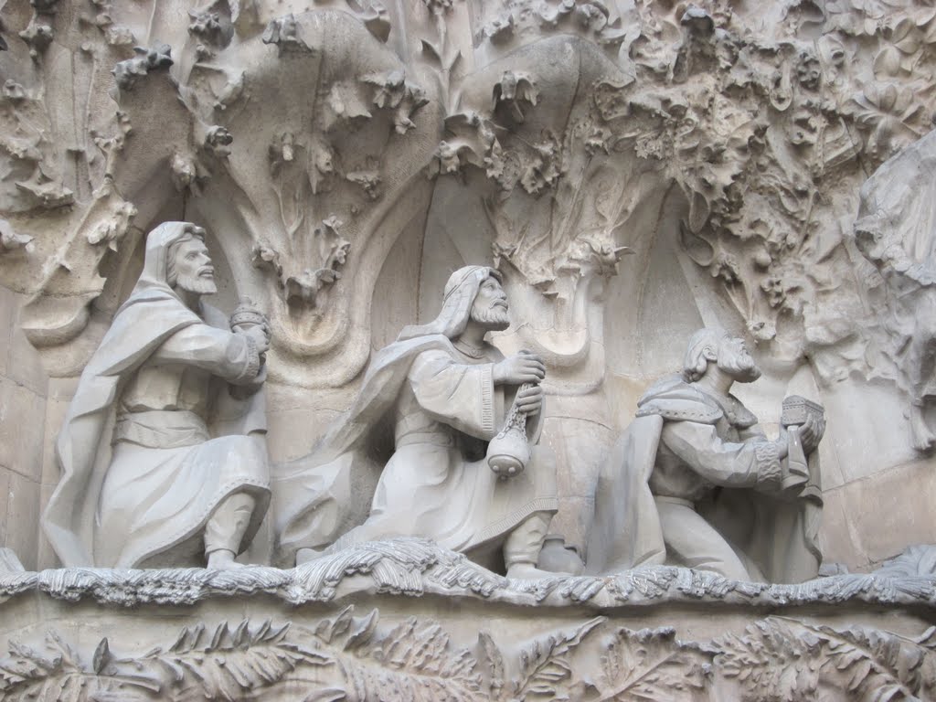 La foto es la Adoración de los Reyes Magos. Fachada del Nacimiento. Sagrada Familia. Barcelona.